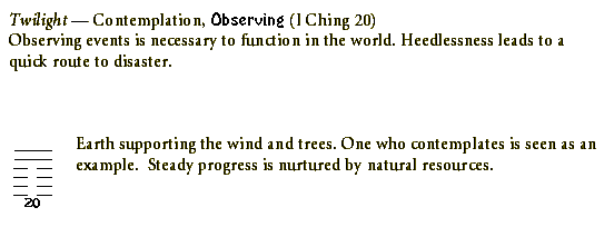 The far side of the first passage through the crossroads in the gates. One of the five virtues in the Confucian tradition. The ability to see the truth of things, including oneself.